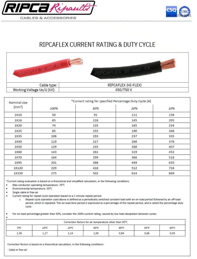 Kabelen er av typen "sveisekabel".