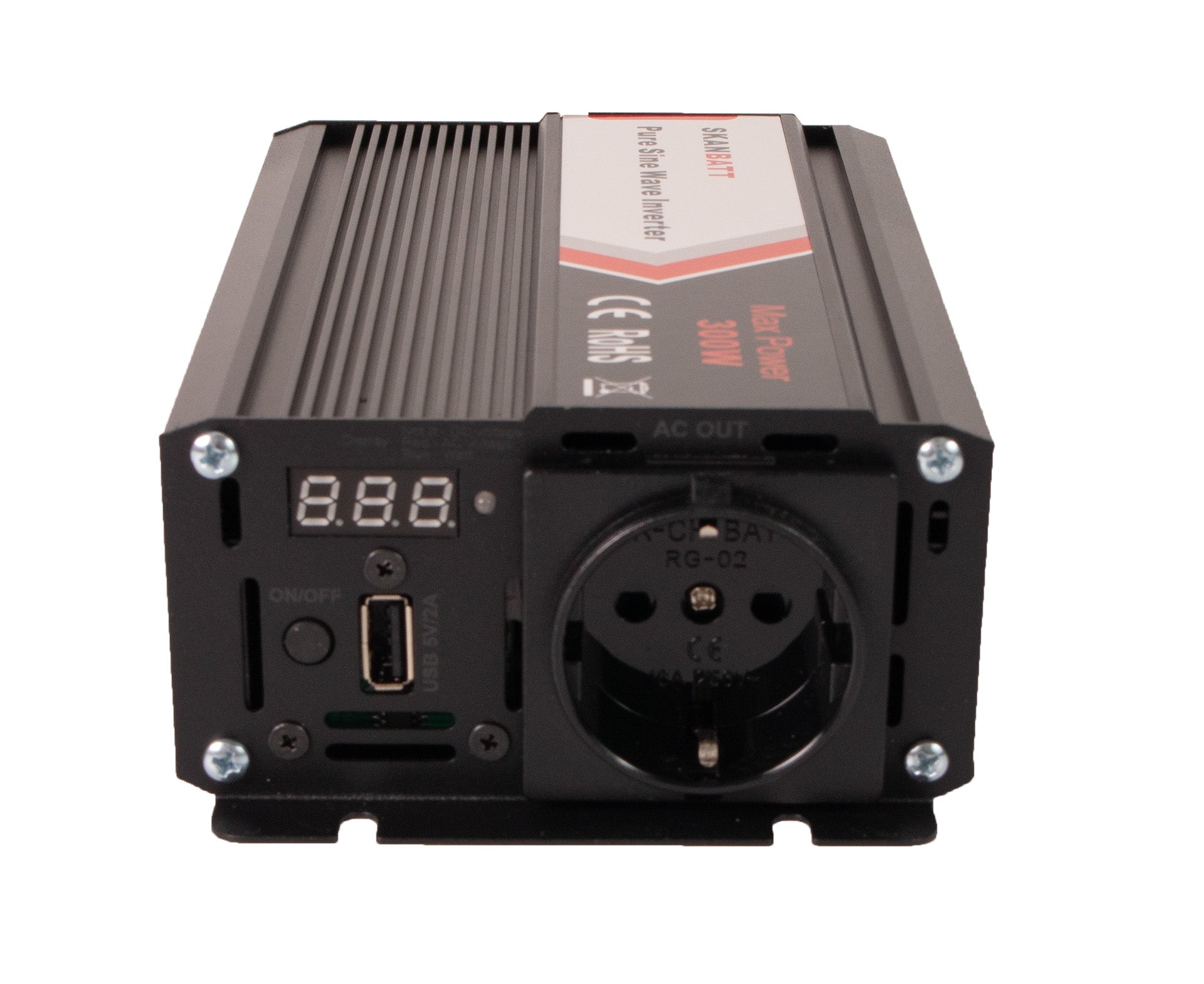 Inverteren har digitalt display i front som viser batterispenning, frekvens og temperatur. Den har også en egen USB-utgang for lading av mobiltelefoner m.m.