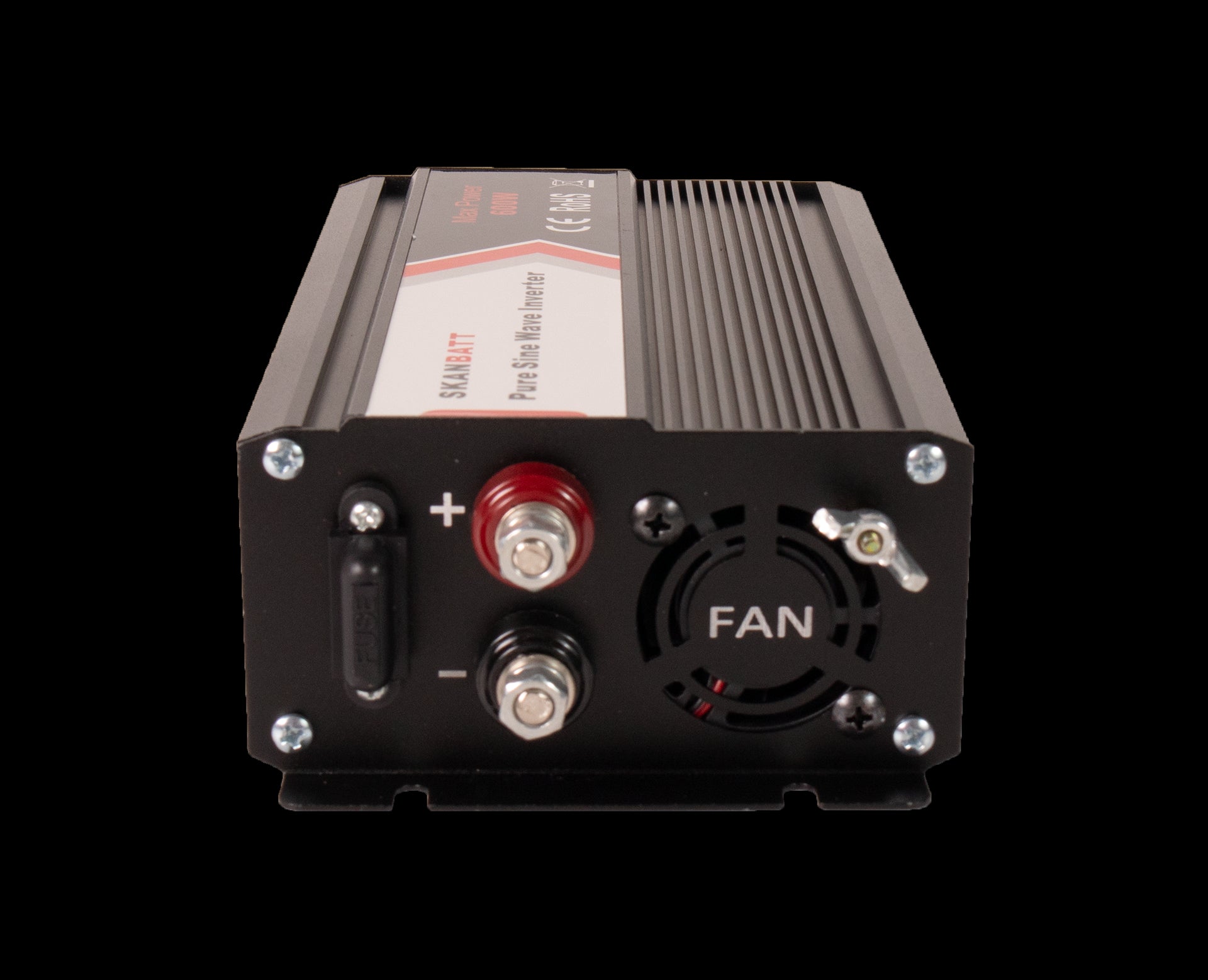 Skanbatt ren sinus-inverter leverer ren 230V AC og kan brukes til alt utstyr, også ømfintlig elektronikk. Den gir deg 230V fra en 24V batteribank i for eksempel hytte, bobil eller båt.