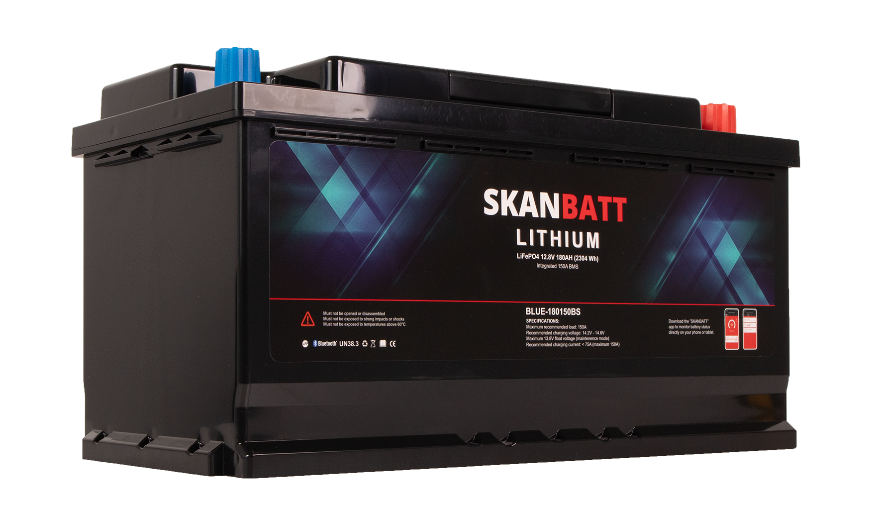 BLUE-180150BS er et lithiumbatteri i SKANBATT Blue-serien, utviklet med utvalgte celler, robust BMS og bygget etter strenge sertifiseringskrav. Denne varianten har ikke innebygget varme og passer best i løsninger som ikke skal lades i kulde, for eksempel mange båter. Skanbatt har lang erfaring med lithiumbatterier og bruksmønstre i nordiske forhold.