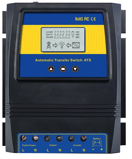 Enheten forsyner en 230 V forbruker enten fra en inverter (når batteribanken er full eller har nok kapasitet) eller fra 230 V-nettet. Eksempel: forsyn en varmtvannstank via inverter fra batteribanken til batteriene er tomme, så bytter ATS automatisk til nettstrøm. Når batteriene er fulle igjen, kobler den tilbake til inverter. Løsningen kan også brukes for eksempel i en bobil med et større solcelleanlegg.