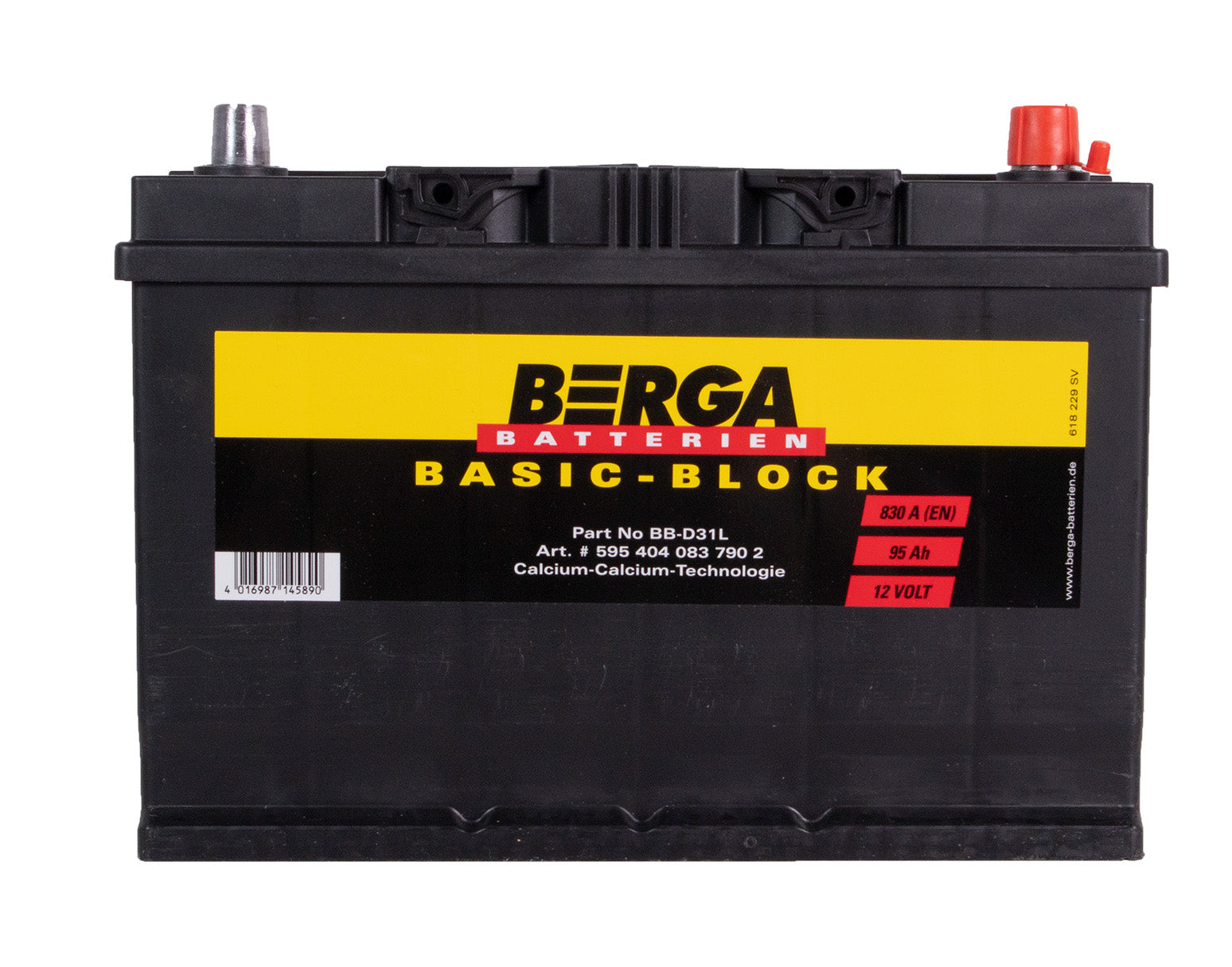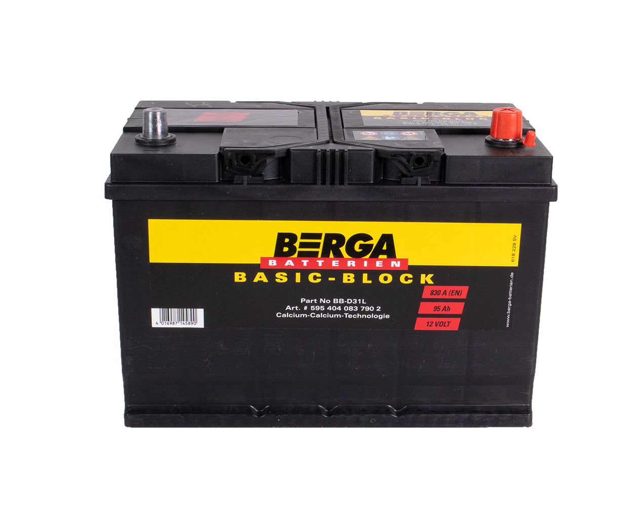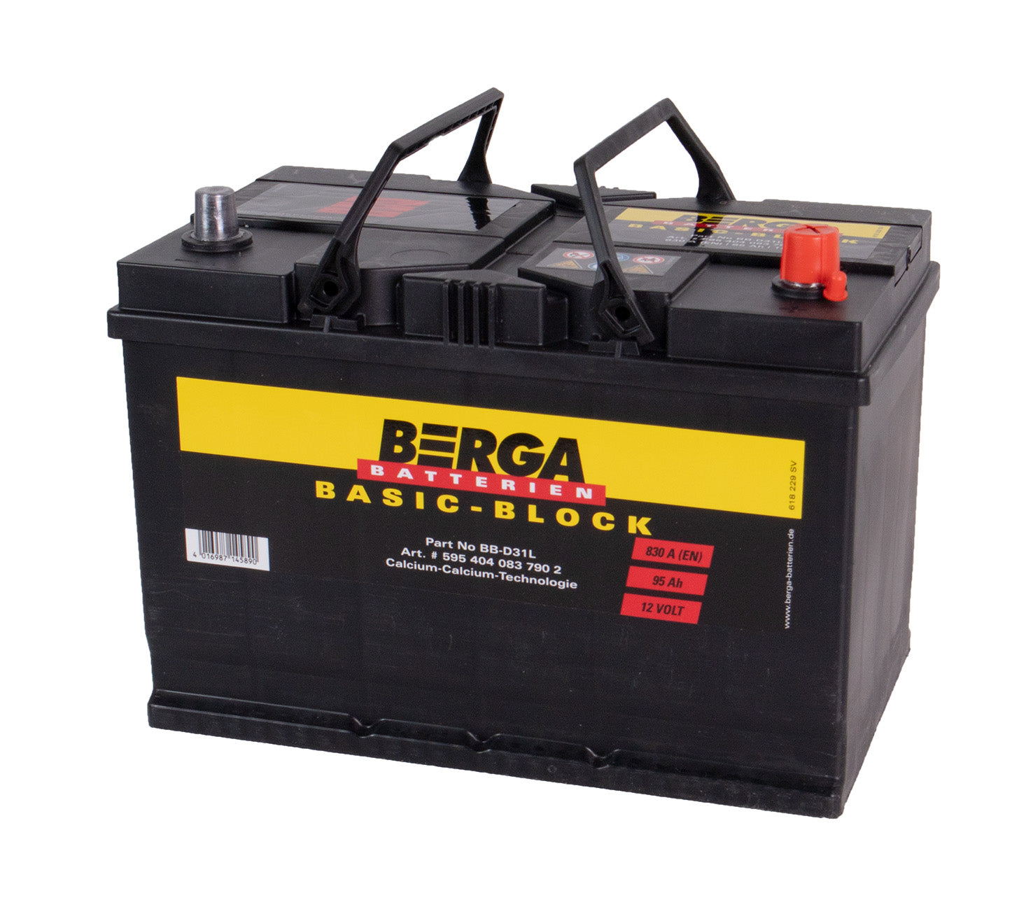 BERGA Basic Block 95Ah er et startbatteri for kjøretøy med høyt strømbehov og krevende bruk. Med kaldstartstrøm på 830A (CCA) og 95Ah kapasitet gir det stabil og pålitelig startkraft for dieselbiler, SUV-er, varebiler og lette nyttekjøretøy.