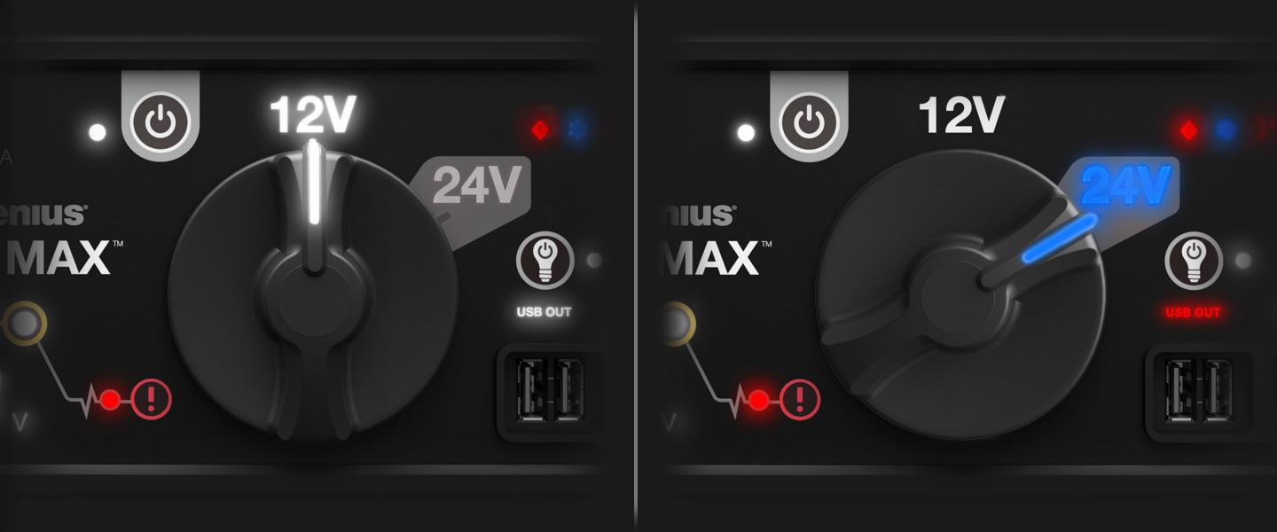 - Innebygd voltmeter som viser spenningen på kjøretøyets batteri