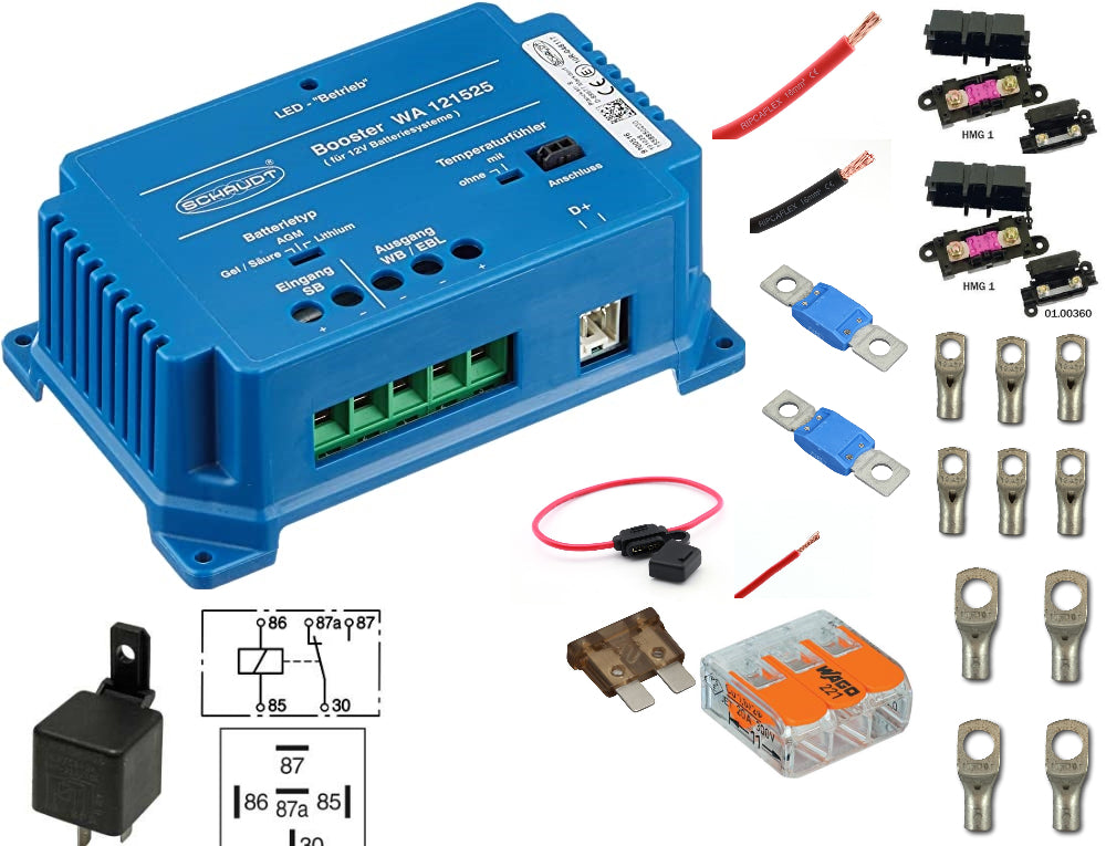 Fricampingpakke M/ 25A Dynamo Hurtiglader er en komplett pakke for montering av Schaudt WA121525 DCDC ladebooster, designet for å gi effektiv lading fra dynamoen i kjøretøy.