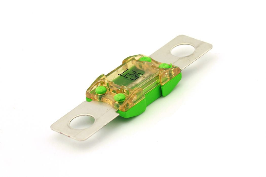 Mega Hovedsikring 125A er en pålitelig sikring designet for bruk i applikasjoner med høy strøm. Den tåler opptil 32V DC og er ideell for sikringsholdere med M8 bolter.