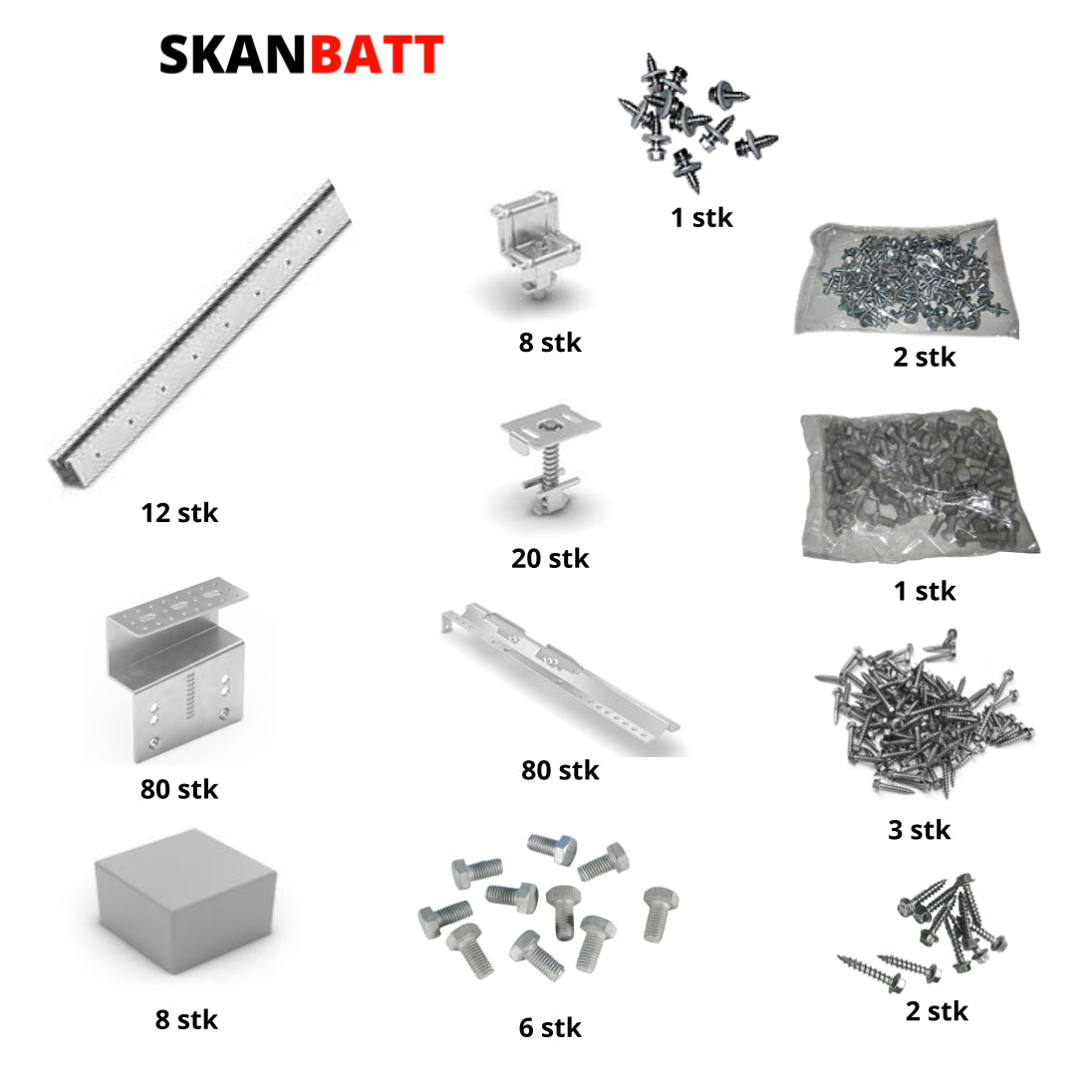 Takfeste For 12 Paneler 2000X1000Mm Til Lekteinnfesting